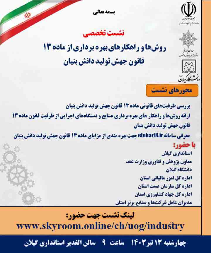 نشست تخصصی روشها و راهکارهای بهره برداری از ماده 13 قانون جهش تولید دانش بنیان