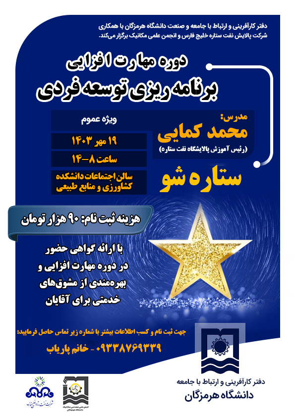 برگزاری کارگاه مهارت افزائی با عنوان " برنامه ریزی توسعه فردی " ( ستاره شو)