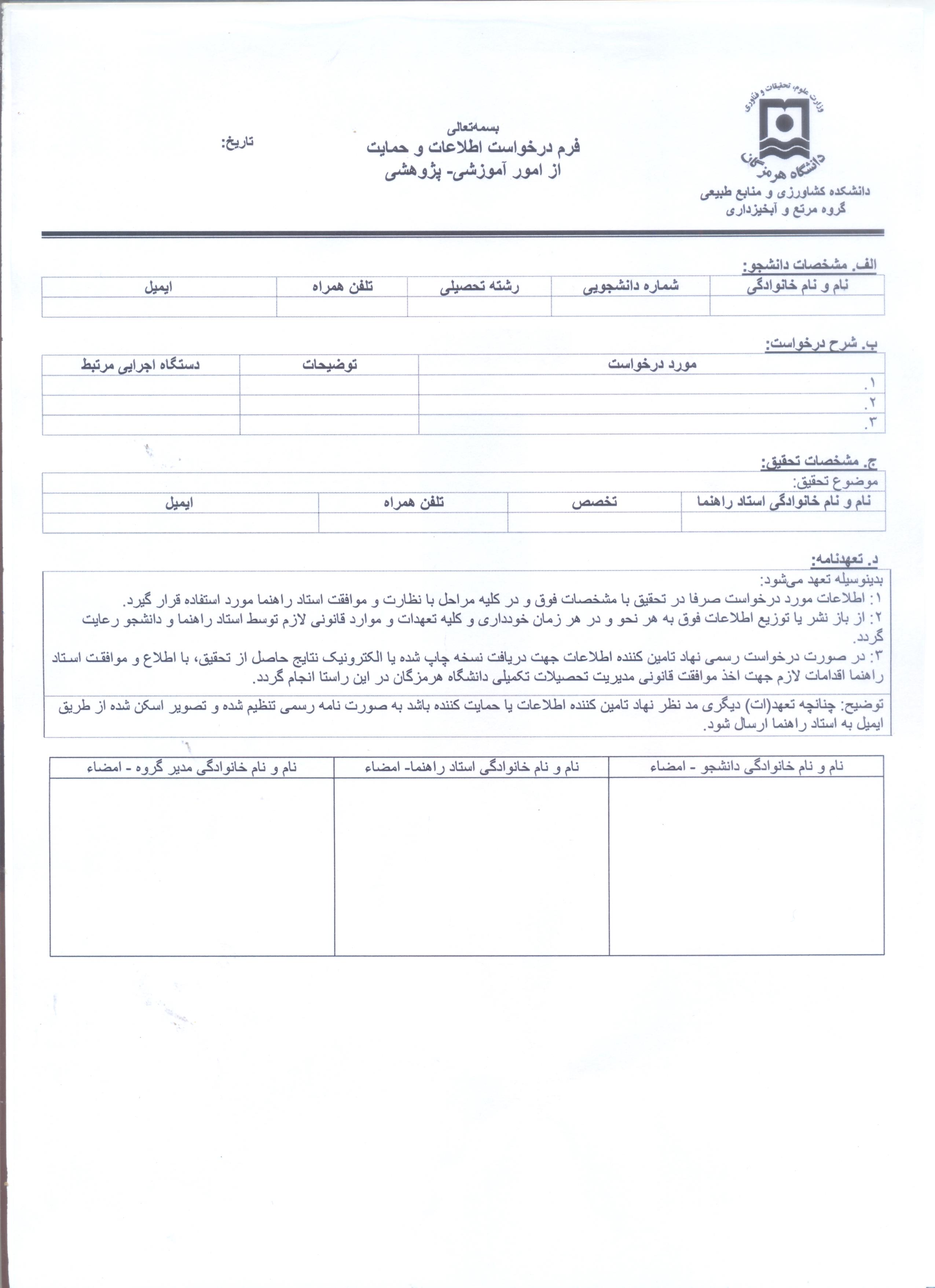 فرم درخواست داده از ادارات خارج ازدانشگاه(1884)
